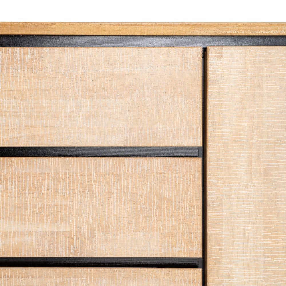 De plus, il s’intègre à merveille dans une déco scandinave minimaliste et chaleureuse. Les pieds en fer noir de 17cm élèvent le meuble pour une légèreté visuelle parfaite. Les tiroirs de 49×18.5cm rangent ustensiles et linge avec aisance discrète. Les portes de 47.5x60cm, avec étagère intérieure à mi-hauteur, dissimulent un espace organisé et astucieux. Ce bahut Ixia structure l’espace sans jamais l’alourdir.