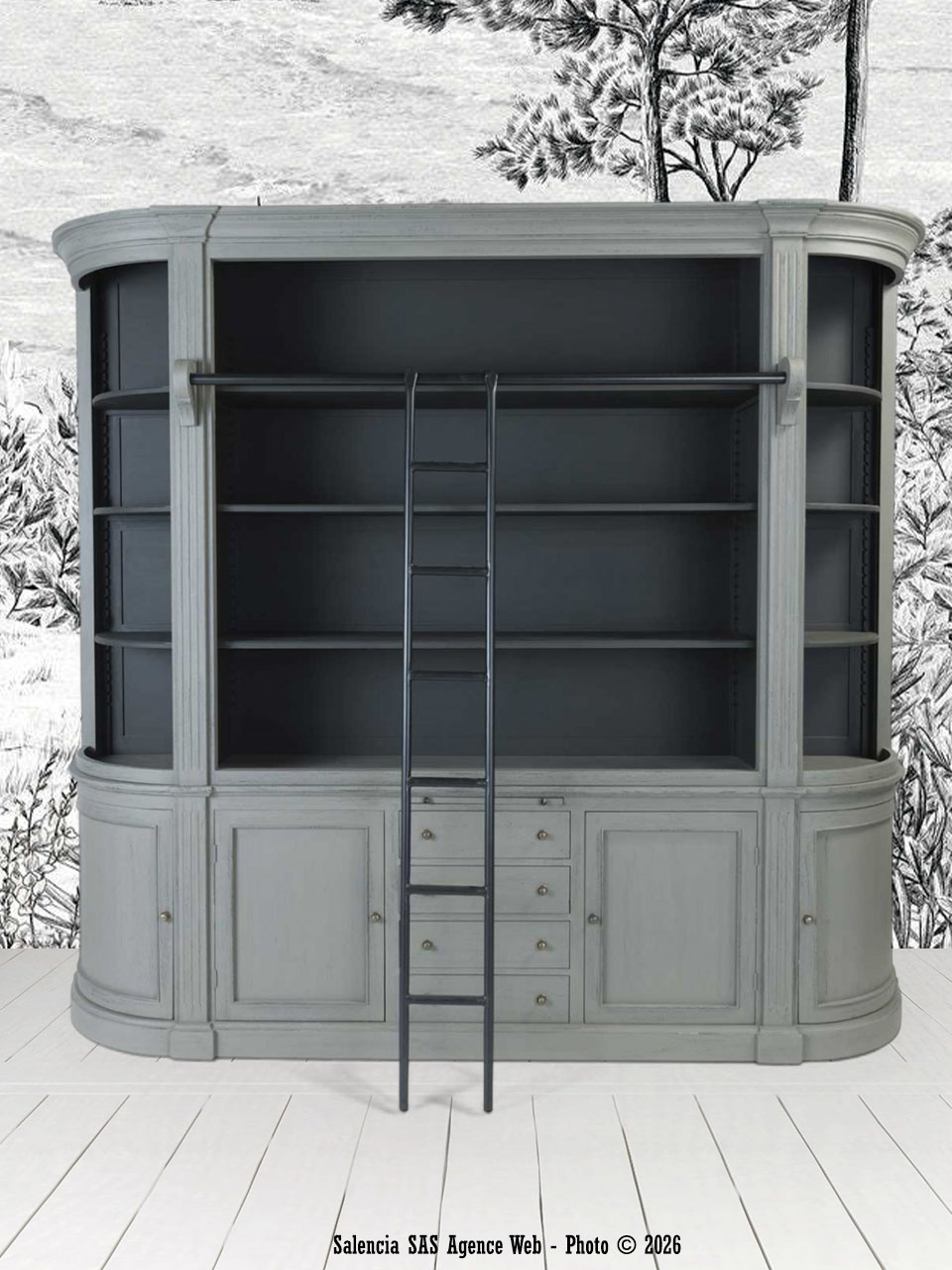 Enfin, cette bibliothèque Signature s’intègre parfaitement dans un univers recherchant authenticité et douceur. Ses finitions patinées se marient aisément avec le lin, le rotin ou les fibres naturelles typiques d’une ambiance campagne chic. Elle peut également dialoguer avec des pièces plus contemporaines en créant une harmonie autour du bois patiné. Ses lignes galbées renforcent la cohérence décorative de l’espace sans l’alourdir. Grâce à son équilibre entre esthétique et praticité, elle devient un atout essentiel pour composer un intérieur chaleureux, inspiré et harmonieux.