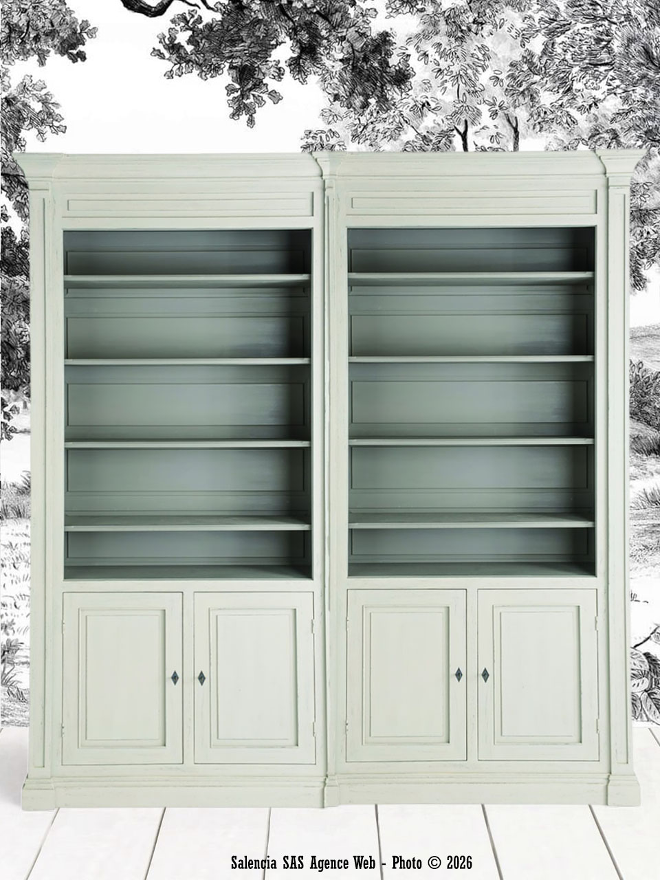 Enfin, cette bibliothèque Signature s’intègre parfaitement dans un univers recherchant authenticité et douceur. Ses finitions patinées se marient aisément avec le lin, le rotin ou les fibres naturelles typiques d’une ambiance campagne chic. Elle peut également dialoguer avec des pièces plus contemporaines en créant une harmonie autour du bois. Ses lignes sobres renforcent la cohérence décorative de l’espace sans l’alourdir. Grâce à son équilibre entre esthétique et fonctionnalité, elle devient un atout essentiel pour composer un intérieur chaleureux, raffiné et harmonieux.