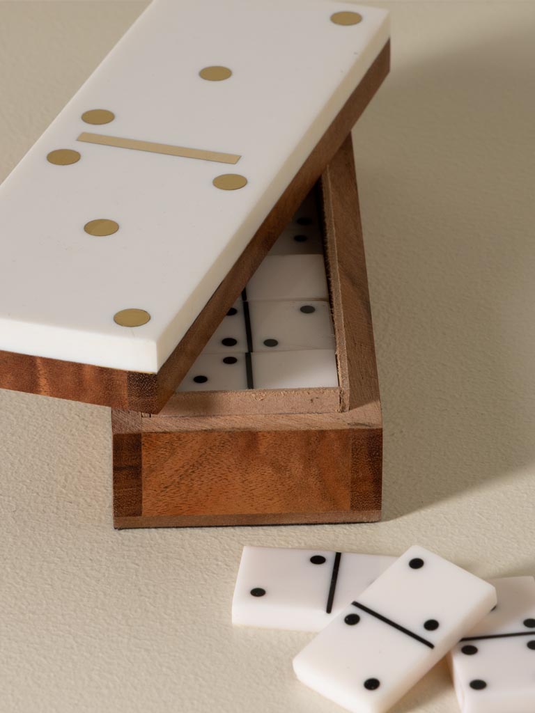 Dans un salon, un bureau ou une bibliothèque, la boîte acacia et laiton dominos blanc trouve naturellement sa place. En effet, sa structure en Acacia apporte une texture chaleureuse qui enrichit un espace. De surcroît, ses détails en laiton créent un contraste subtil qui renforce l’esprit déco scandinave. On peut également l’associer à des matières naturelles comme le lin ou le rotin pour composer une ambiance douce. Grâce à son design soigné, elle devient un élément décoratif polyvalent. Ainsi, elle s’intègre aussi bien dans un intérieur minimaliste que dans une ambiance plus chaleureuse.