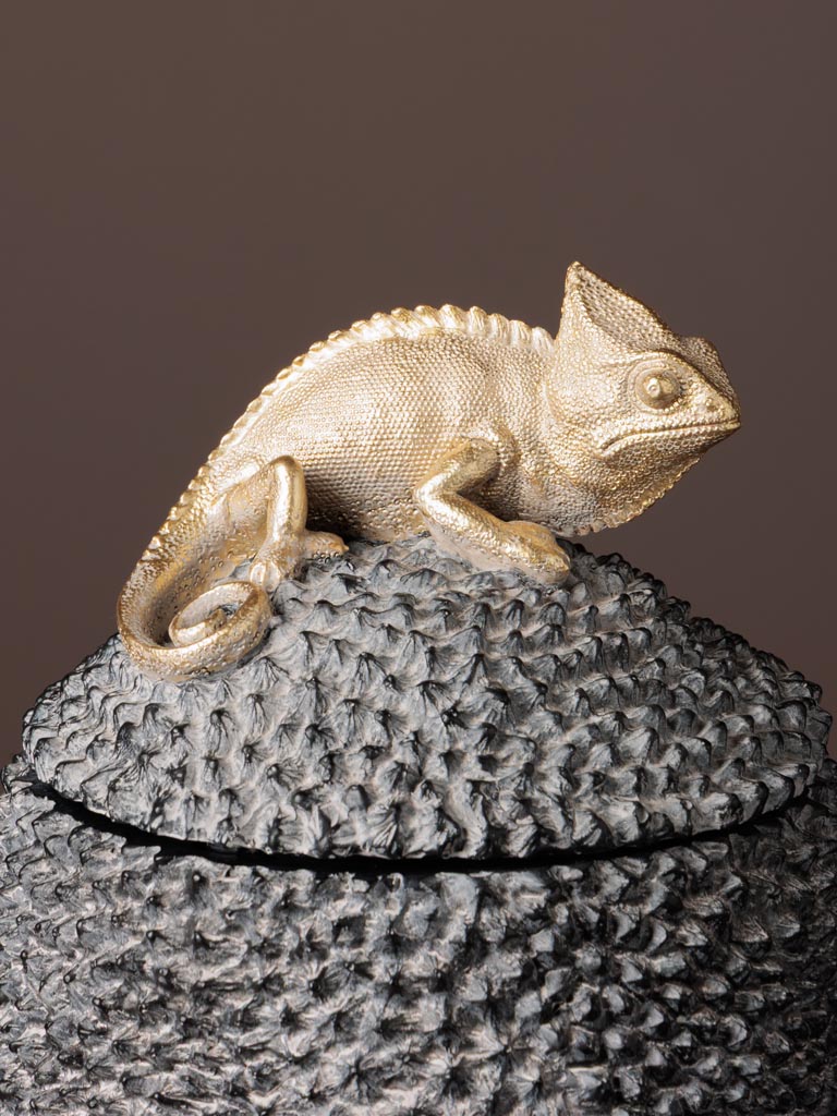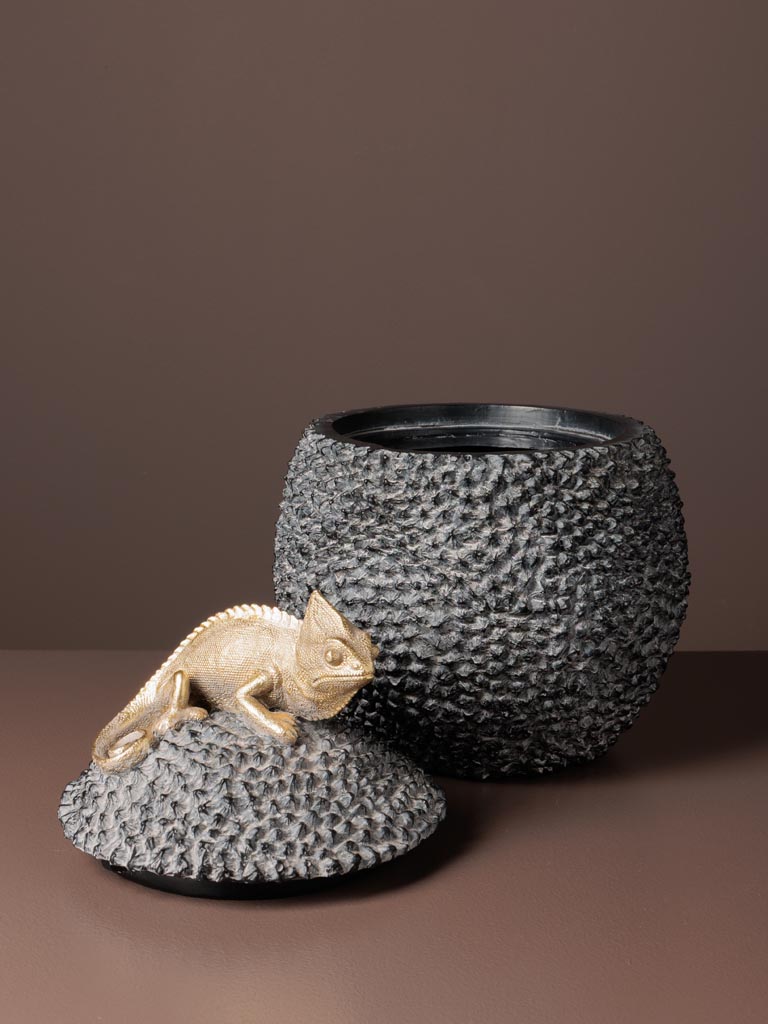 La boîte grise foncée caméléon de la marque Chehoma est un objet de décoration qui attire immédiatement l’attention grâce à son design unique et sophistiqué. Dès le premier regard, on remarque l’élégance de cette boîte, qui s’intègre parfaitement dans une ambiance déco jungle urbaine. En effet, son aspect à la fois moderne et mystérieux en fait un accessoire incontournable pour ceux qui souhaitent apporter une touche d’originalité à leur intérieur. De plus, la couleur noir de la boîte lui confère une allure chic et intemporelle, capable de s’harmoniser avec différents styles de décoration. Ainsi, que vous soyez amateur de design contemporain ou de tendances plus exotiques, cette Boîte Chehoma saura répondre à vos attentes.