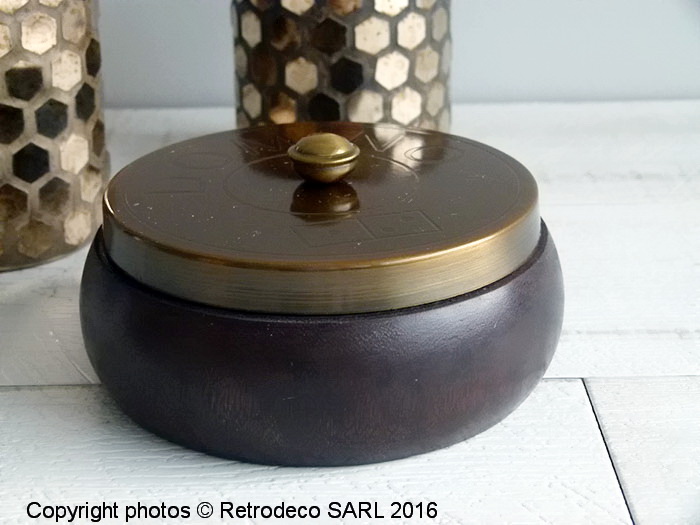 Boite ronde Domino bois et laiton déco brocante Chehoma
