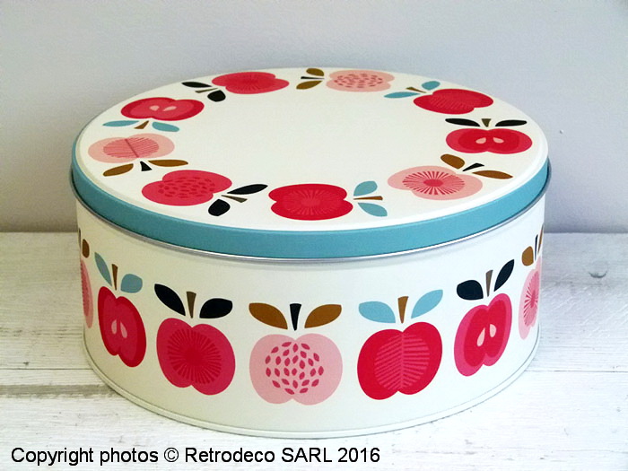 Mettez un peu de couleur et de pep’s dans votre cuisine avec cette boîte Vintage Apple (grand modèle) avec son motif pomme bien rétro. Idéale pour tout ranger, vous pouvez également l’offrir en la remplissant de gâteaux ou gourmandises. Fintion mat. Une création Rex International. Existe dans d’autres tailles. Dimensions : Diam (19cm) – Hauteur (8.5cm).