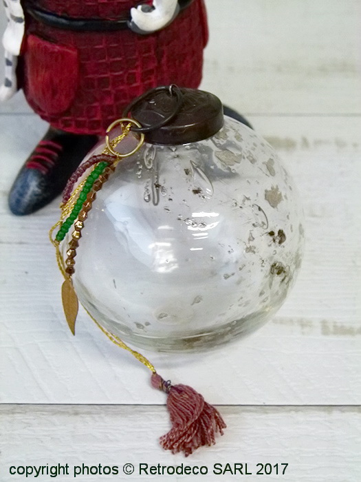 Boule de Noël en verre soufflé et breloque Madam Stoltz