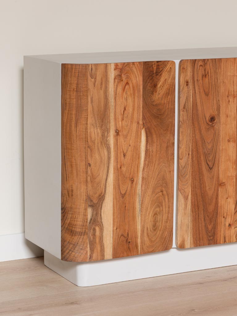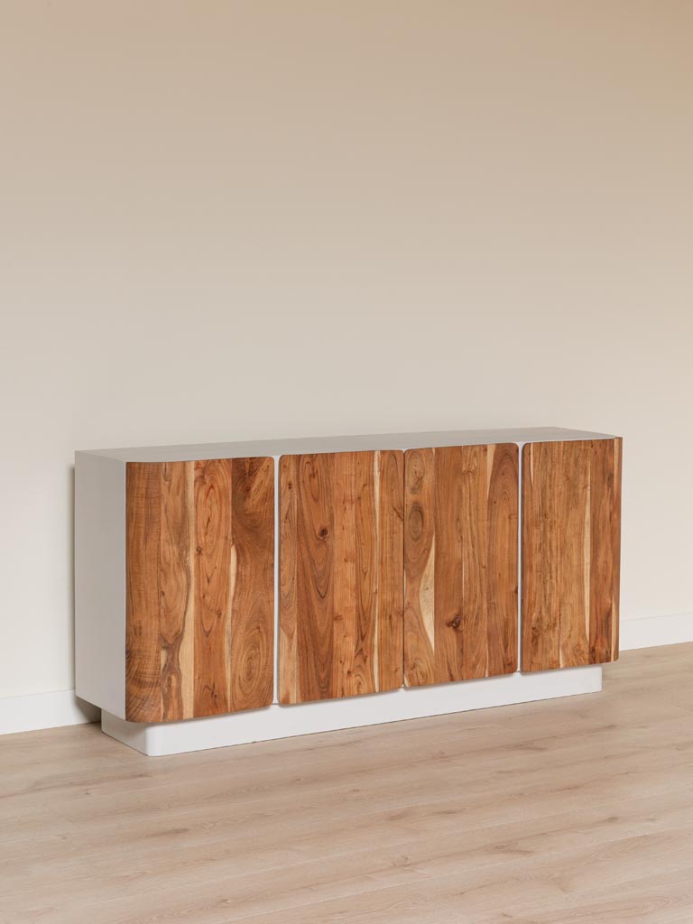 Le buffet 4 portes Villalba conçu par Chehoma se distingue par son élégance naturelle et son design épuré. Sa structure mêlant Acacia et Manguier lui confère une solidité remarquable, tandis que ses nuances blanc et marron créent un contraste doux et harmonieux. Ce Buffet Chehoma s’intègre parfaitement dans une déco scandinave, où les matières naturelles et les lignes simples occupent une place centrale. Il devient rapidement un élément essentiel dans un salon, une salle à manger ou une entrée.