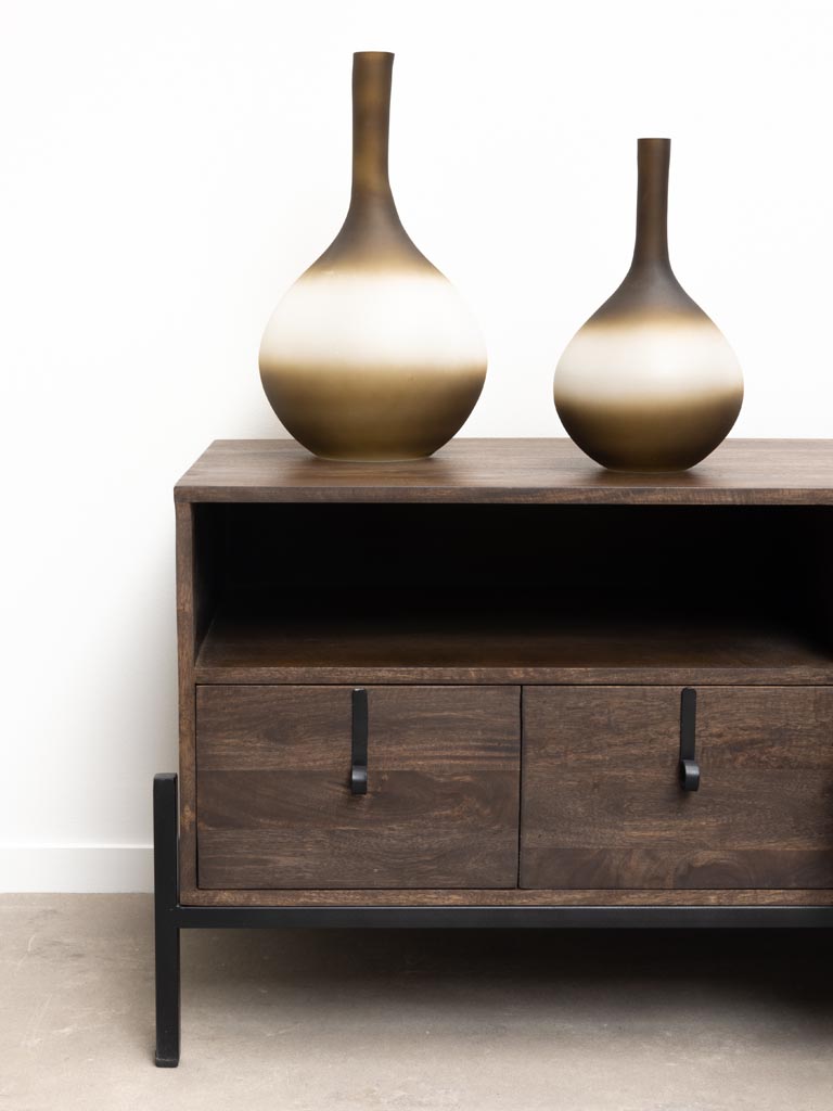 Ce buffet bas ou meuble TV Flagey tout en manguier s’inscrit dans la tendance déco ethnique chic. On aime ses portes en bois massif et les jolis boutons en fer forgé. Ce meuble TV pourra également servir de console basse. Il vous permettra de ranger dans les placards sur les côtés et de disposer au milieu console, matériel hi-fi, etc… Découvrez sur notre site la collection Chehoma chiffonnier, commode, buffet et chevet. Meuble TV Chehoma. Dimensions : Longueur 120cm Profondeur 40cm Hauteur 51cm