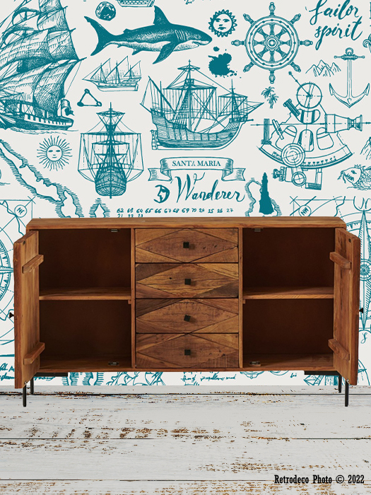 Ce buffet Kota tout en bois s’inscrit dans la tendance déco ethnique chic. Avec ses 4 tiroirs et ses deux portes il vous permettra par exemple de ranger de la vaisselle. Vous pourrez aussi le détourner pour ranger des accessoires de mode dans une chambre. Meuble de la collection Kota de Athezza. Dimensions : L140cm – P36cm – H80cm. Précision: appeler pour vérifier la disponibilité.