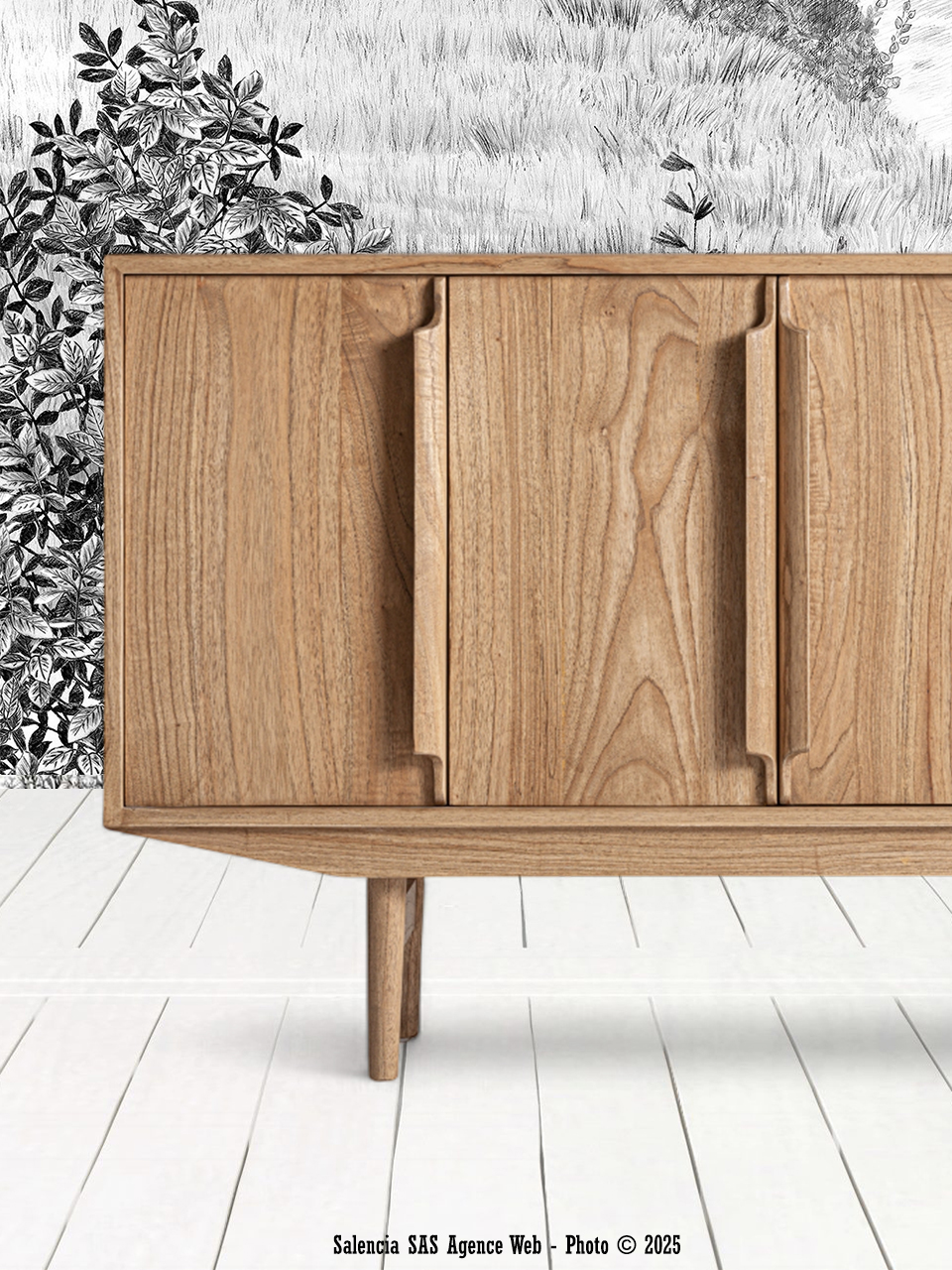 En outre, le Buffet Kodu se distingue par sa grande fonctionnalité. Doté de quatre portes, il offre un espace de rangement généreux pour organiser vaisselle, linge de maison ou objets du quotidien. Ainsi, il contribue à maintenir un intérieur ordonné tout en apportant une touche d’élégance. Par ailleurs, la qualité du bois de mindi garantit robustesse et durabilité, ce qui fait de ce meuble un investissement sur le long terme. Son coloris marron naturel met en valeur la beauté du bois et crée une atmosphère chaleureuse et accueillante. De surcroît, les finitions soignées et les détails discrets renforcent l’aspect raffiné de ce buffet.