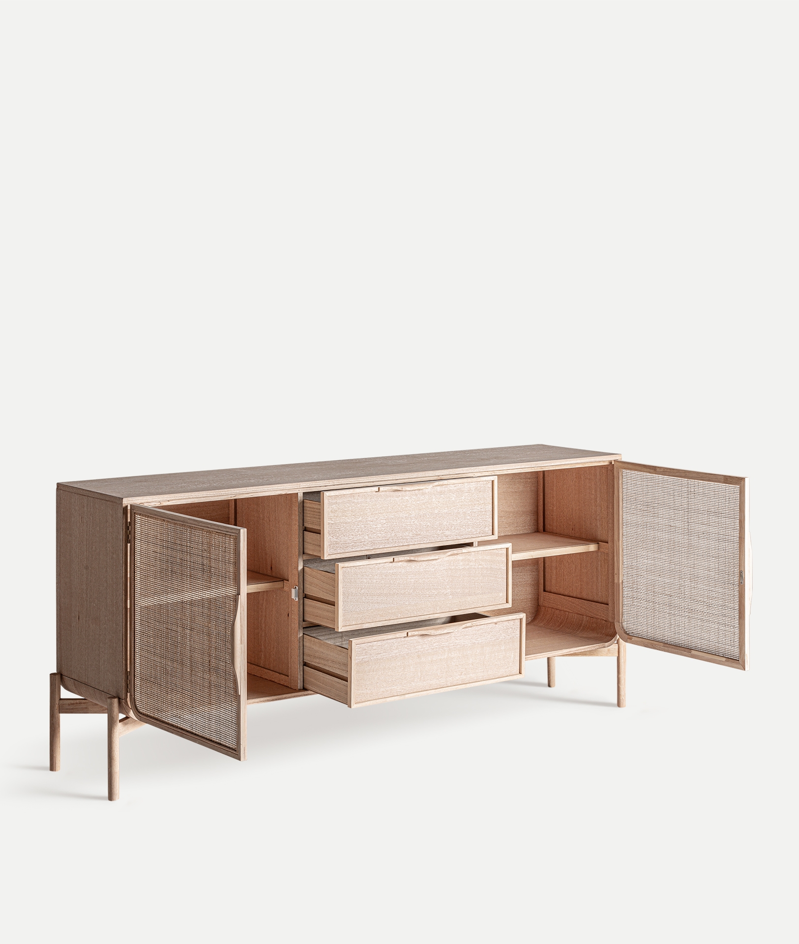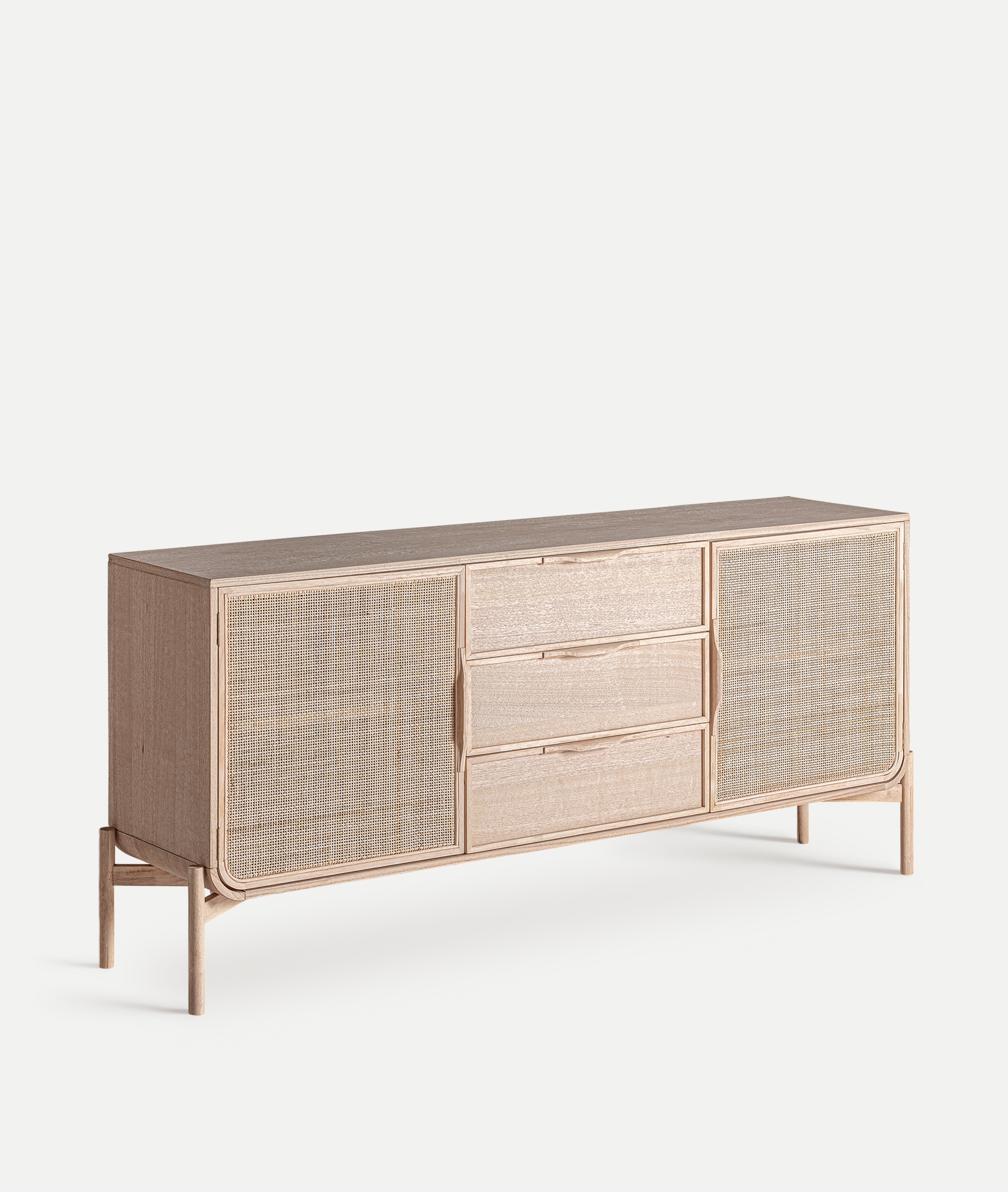 Par ailleurs, le Kodu séduit par ses détails soignés et sa finition impeccable, qui rappellent l’artisanat traditionnel tout en restant résolument contemporain. Les poignées discrètes et les pieds légèrement inclinés évoquent subtilement l’esprit nordique, tandis que l’utilisation du rotin sur certaines parties du meuble apporte une touche d’originalité et de légèreté. Ce mélange de matériaux et de couleurs crée un contraste harmonieux, renforçant l’attrait visuel du buffet. En outre, la couleur marron du bois de frêne accentue la sensation de chaleur et de convivialité, ce qui en fait un choix parfait pour ceux qui recherchent un mobilier à la fois pratique et décoratif. Le buffet Weurtz s’impose donc comme une pièce maîtresse, capable de transformer l’ambiance d’une pièce en un clin d’œil.