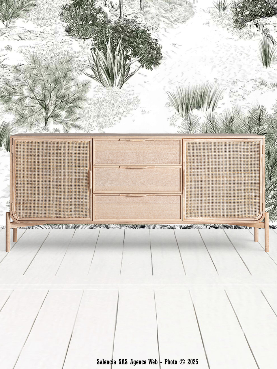 Enfin, choisir le buffet Weurtz c’est opter pour un meuble durable, conçu pour résister à l’épreuve du temps tout en conservant son charme. Son grand espace de rangement permet de garder un intérieur ordonné, tout en exposant quelques objets décoratifs sur son plateau supérieur. Que vous soyez adepte du style minimaliste ou que vous aimiez mixer les influences, ce buffet s’adapte à toutes les envies grâce à son design polyvalent. En résumé, le Buffet Kodu incarne parfaitement l’esprit déco scandinave avec ses matériaux naturels, ses lignes sobres et son élégance intemporelle, faisant de lui un choix judicieux pour sublimer votre espace de vie.