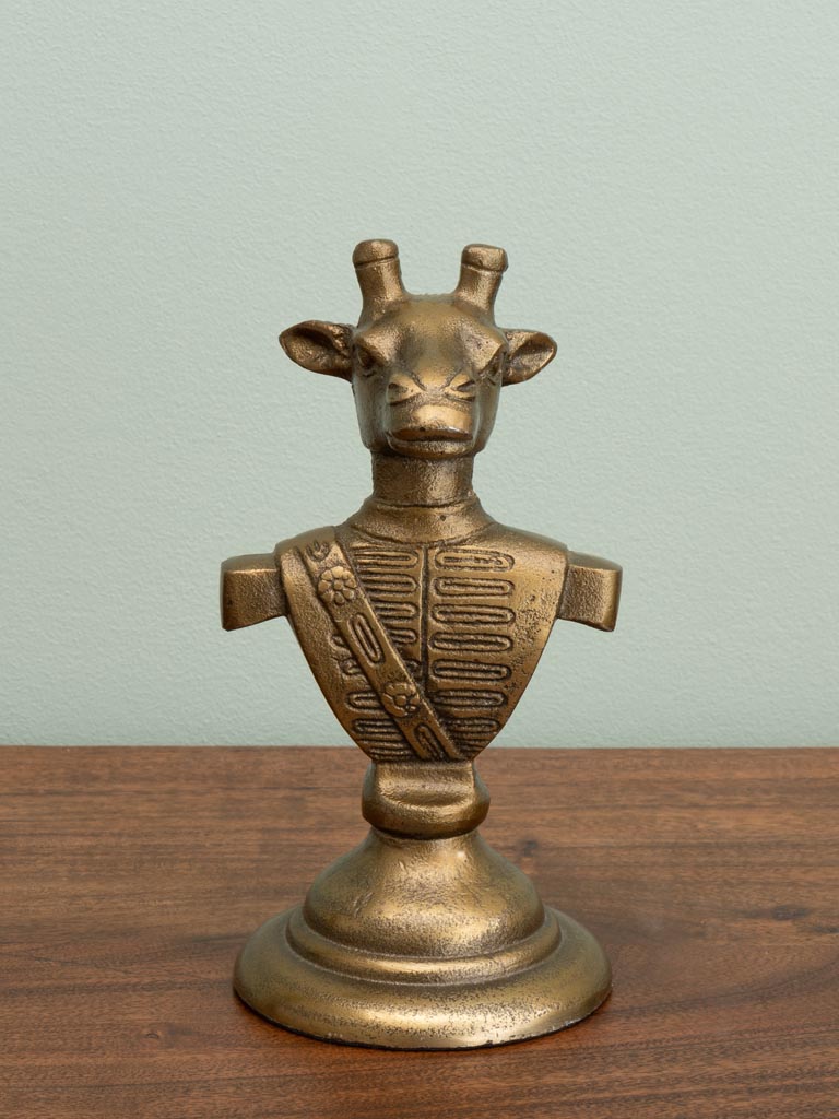 Buste de girafe patine vieil or