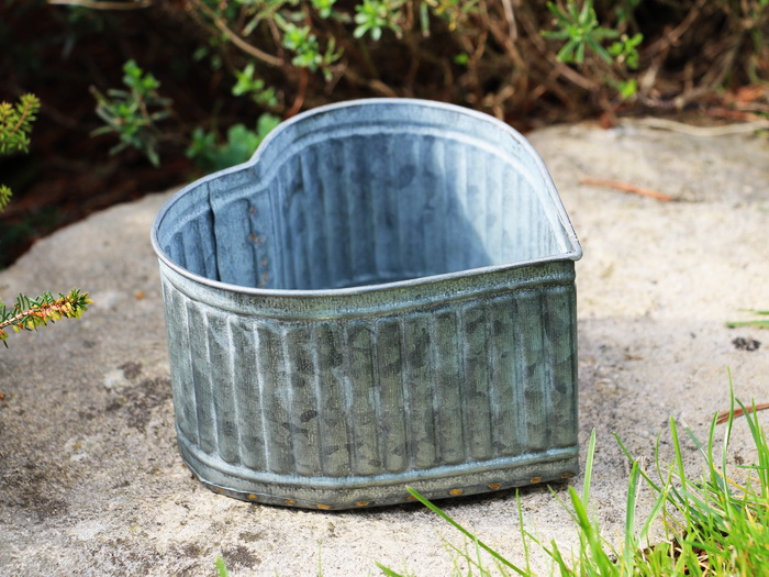 Cache-pot zinc strié Coeur PM déco campagne