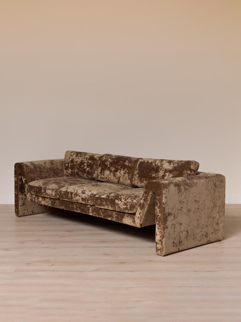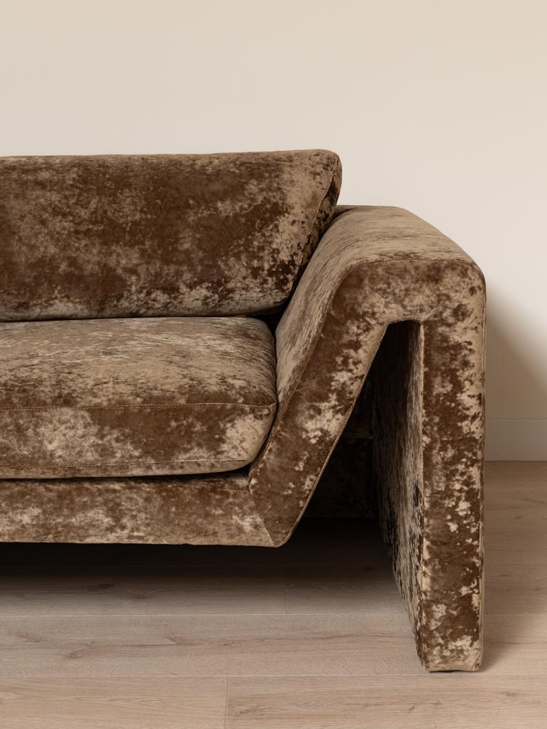Par ailleurs, ce marron chaleureux et nuancé s’épanouit dans une déco vintage, où les tons terreux dialoguent avec des éléments chinés et authentiques sans dissonance. La texture profonde du polyester évoque le cuir vieilli ou le velours d’époque, s’harmonisant avec des tapis persans usés, des fauteuils bergère ou des appliques en laiton oxydé. Les pieds pyramidaux en bois sombre ajoutent une note architecturée qui libère l’espace au sol, facilitant l’entretien et la circulation gracieuse. Ainsi, il converse avec des buffets d’époque, des miroirs dorés ou des rideaux en lin massif, créant une atmosphère narrative et enveloppante. Il invite à la conversation prolongée ou à la sieste contemplative avec une noblesse naturelle.