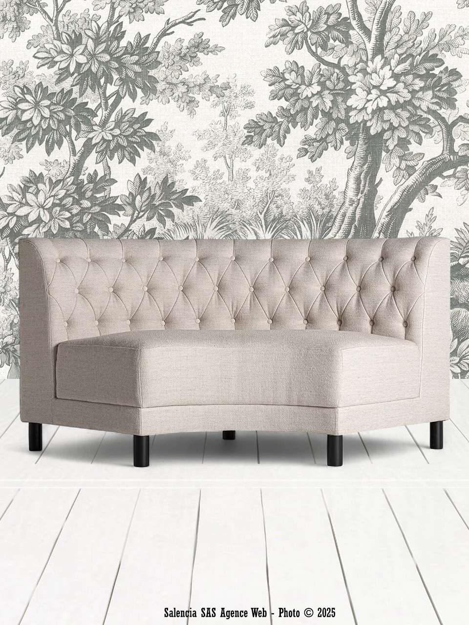 Ensuite, le canapé angle Modulable Egna se distingue par sa modularité. En effet, il s’adapte à toutes les configurations de pièce. Que vous ayez un grand espace ou un coin plus restreint, il trouve sa place sans difficulté. De surcroît, sa conception modulaire permet de changer la disposition selon vos envies. Cela favorise la convivialité lors des moments partagés en famille ou entre amis. De plus, les finitions doré sur certains éléments soulignent le raffinement de l’ensemble. Ce détail subtil rehausse le caractère du canapé Vical et lui confère une allure unique.