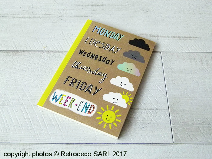 Carnet Week-end plein d’humour pour tout noter illustré par Corinne Demuynck pour les Editions Cartes d’Art. Certaines parties de la couverture sont iridescents et fluos. A s’offrir ou à offrir. Pages intérieures ivoires. Carnet de 128 pages. Dimensions : L12.5cm – l17.5cm.
