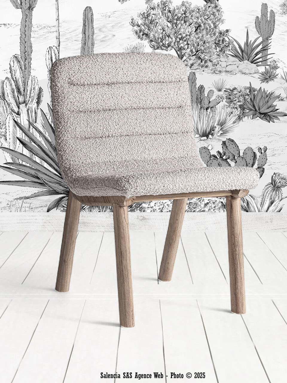 La chaise Jacquard modèle 2 de Vical est une pièce unique qui attire immédiatement l’attention. Dès le premier regard, on remarque son design épuré et moderne. Grâce à son association de bois et de tissu beige, elle s’intègre parfaitement dans une déco campagne chic. De plus, la structure en chêne apporte une touche chaleureuse et naturelle à l’ensemble. Ce mélange de matières crée une atmosphère accueillante et raffinée dans la salle à manger. Ainsi, la Chaise Vical devient un élément central de la décoration intérieure.