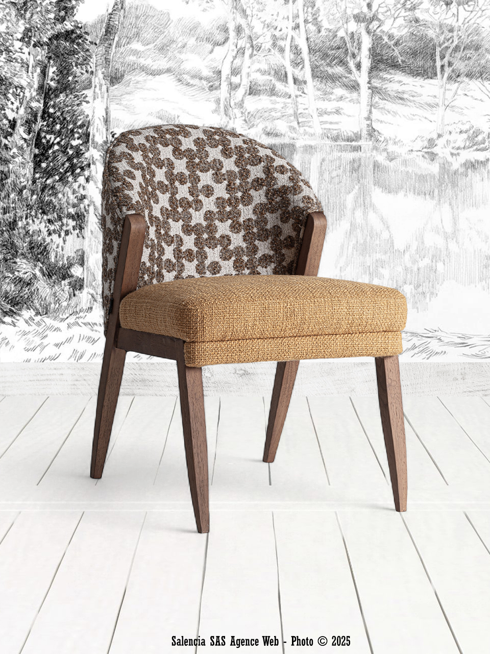 En effet, la chaise Kalesha se distingue par son style classique et intemporel. Elle s’adapte aussi bien à une salle à manger qu’à un bureau ou un salon. Son design épuré et ses lignes simples permettent de l’associer à d’autres meubles sans difficulté. La couleur marron du bois et le tissu marron moutarde créent un contraste subtil et élégant. Cette chaise peut également compléter une décoration multicolore grâce à sa teinte neutre et chaleureuse. Elle s’harmonise parfaitement avec une ambiance déco ethnique chic, apportant une touche d’authenticité et de raffinement. La Chaise Vical est donc un atout pour personnaliser votre espace de vie.