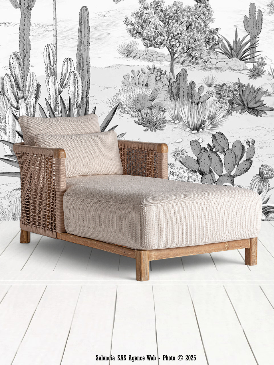 La chaise Longue Trena Bali de la marque Vical est idéale pour une ambiance relaxante. D’abord, son design boho s’intègre parfaitement dans une déco campagne chic. Grâce à sa structure en bois de chemin de fer, elle offre une grande robustesse. Sa couleur marron naturelle apporte de la chaleur à votre espace. De plus, le polypropylène recyclé beige et la mousse assurent un confort optimal. Ainsi, cette chaise Vical combine esthétique et fonctionnalité.