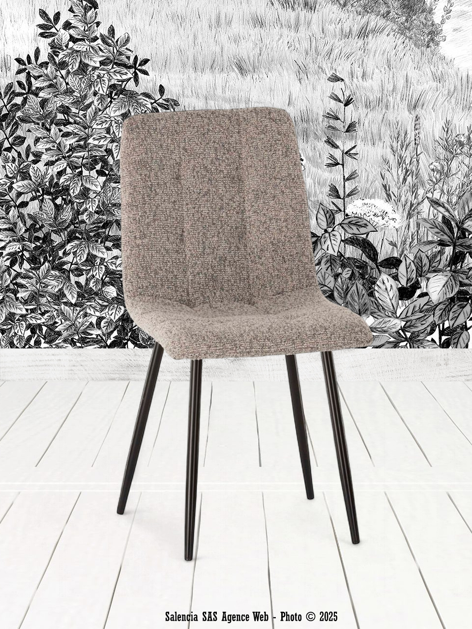 La teinte gris chiné du tissu confère à cette chaise Athezza une allure sobre et sophistiquée, facile à intégrer dans une variété de décors. En plus de sa couleur polyvalente, le tissu est résistant et agréable au toucher, garantissant à la fois confort et durabilité, même avec un usage quotidien. Le bois du dossier apporte une note naturelle et chaleureuse qui contrebalance la fraîcheur du métal, créant ainsi un équilibre subtil entre matières naturelles et industrielles. Ce modèle, avec sa structure robuste et sa finition soignée, devient un élément de décoration incontournable, que ce soit autour d’une table à manger, dans un bureau ou pour agrémenter un coin lecture.