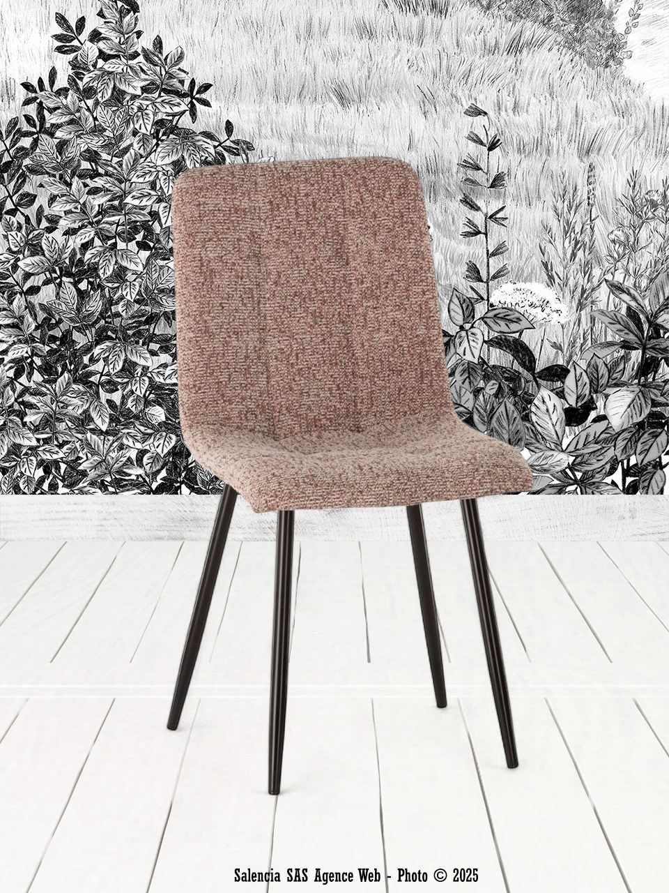 Le choix de l’orange chiné pour le revêtement de cette chaise Athezza ajoute une profondeur et une sophistication qui transcendent les tendances. La texture douce et résistante du tissu garantit un confort d’assise durable, tandis que sa couleur vive injecte une touche de modernité dans un design résolument rétro. La structure en bois du dossier, conjuguée à la robustesse des pieds en métal noir, crée une pièce à la fois élégante et fonctionnelle, capable de résister au quotidien tout en embellissant l’espace. Ce modèle au charme intemporel devient ainsi un élément décoratif clé, alliant esthétique et confort avec une note de nostalgie.