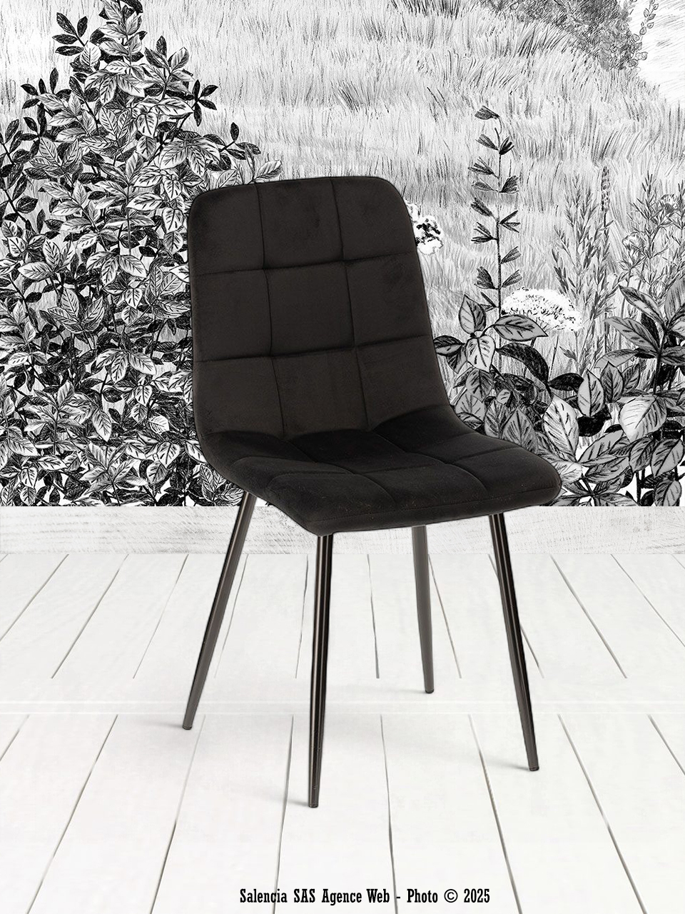 En plus de son esthétique raffinée, la Chaise Manta Velours Noir est conçue pour offrir un confort exceptionnel. Son dossier en bois assure un bon soutien, tandis que l’assise en velours est parfaite pour des moments prolongés de détente ou des repas conviviaux. L’intégration des pieds en métal assure une stabilité fiable tout en complétant le look vintage du design. Cette chaise est idéale pour ceux qui recherchent un mobilier qui combine élégance rétro et fonctionnalité moderne, offrant ainsi une pièce qui se démarque par sa beauté tout en étant pratique pour tous les jours.
