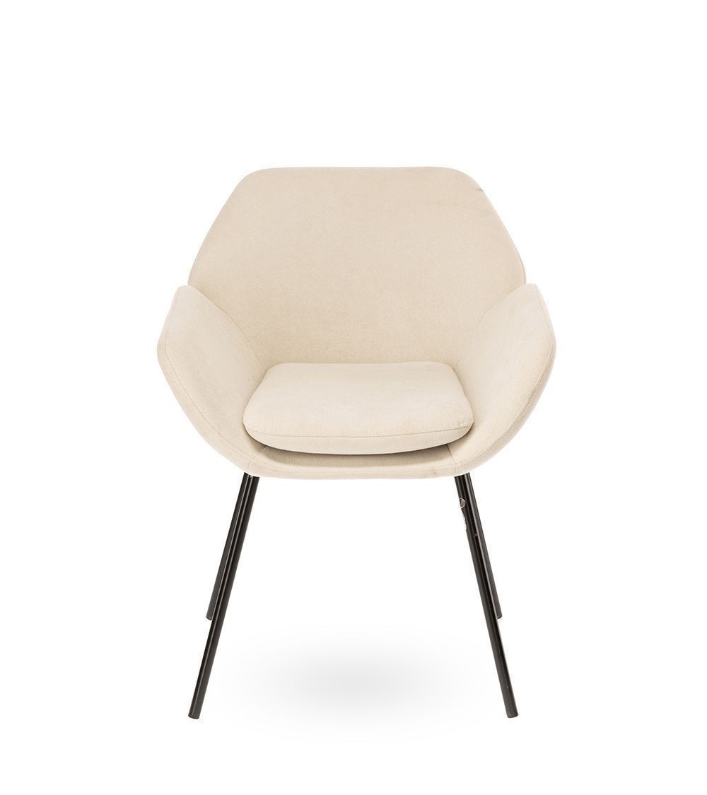 Son revêtement en tissu beige, doux au toucher, invite à s’y asseoir pour profiter d’un moment de détente. Le contraste entre la couleur claire de l’assise et les pieds en métal noir crée une harmonie parfaite, rappelant les styles rétro avec une touche moderne. Sa légèreté visuelle lui permet de s’intégrer facilement dans divers intérieurs, qu’ils soient contemporains ou plus classiques. La chaise Ribera Crème est donc un choix incontournable pour ceux qui recherchent une pièce à la fois pratique et décorative.