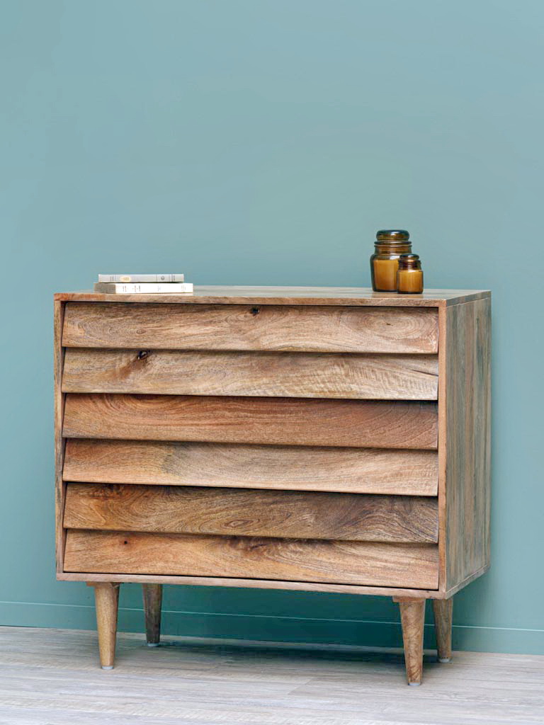 Commode Jalousie 3 tiroirs en manguier naturel Chehoma