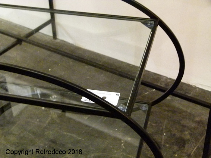 Cette console Sphère en métal noir avec ses tablettes en verre sera idéale comme meuble d’appoint. On aime sa forme ovale toute en rondeur. Existe également en dorée. Console Sphère noire Hanjel. Dimensions : L99cm – P25cm – h76cm. Précision: appeler pour vérifier la disponibilité et enlèvement uniquement sur place à Louveciennes (78) ou Rueil (92).