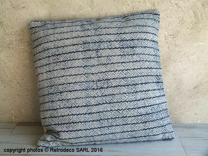Coussin 100% coton aux motifs géométriques un peu ethniques dans les tons bleus sur fond écru de chez Light & Living. Posé sur un canapé, un lit ou un fauteuil il personalisera tout en lui apportant du caractère votre intérieur. Coussin déhoussable par zip. Dos uni écru. Garniture 100% polyester fourni. Dimensions : L50cm – l50cm.