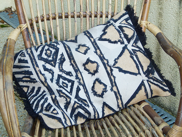 Coussin rectangulaire jute et broderie déco ethnique chic
