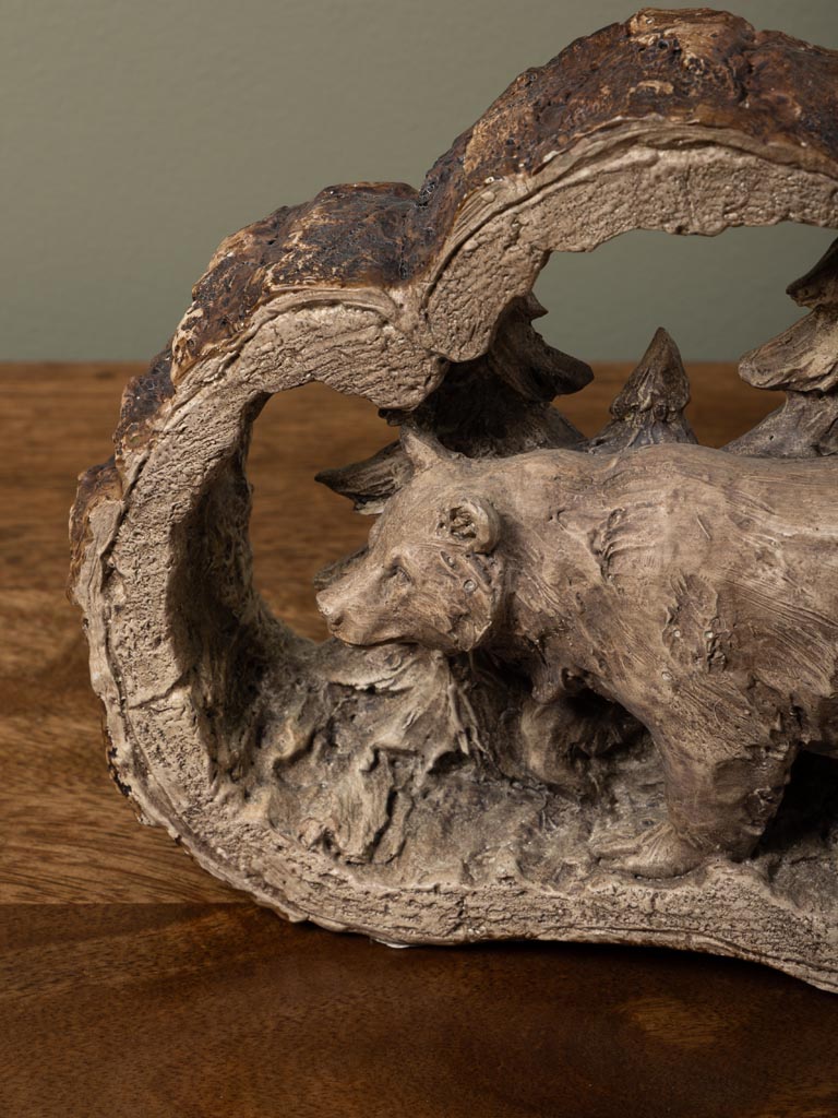 Ensuite, cette déco ours s’inscrit parfaitement dans une déco montagne où les objets inspirés de la nature et de la faune apportent charme et authenticité. Elle rappelle les accessoires qui mêlent rusticité et élégance pour créer une ambiance conviviale et apaisante. Toutefois, son style reste subtil et équilibré, sans surcharge visuelle. Les lignes réalistes et la finition marron mettent en valeur la qualité de fabrication et le soin apporté aux détails. De plus, la résine assure une texture durable et agréable qui conserve son éclat au fil du temps. Ainsi, elle s’accorde facilement avec des meubles en bois massif, des textiles aux teintes naturelles ou d’autres objets décoratifs aux couleurs sobres. Par ailleurs, elle peut également servir de pièce maîtresse pour créer un point focal sur une étagère, une console ou une table. Son design intemporel traverse les tendances sans perdre de son attrait. L’objet contribue à instaurer une atmosphère chaleureuse et raffinée dans un salon, une chambre ou un bureau. Il enrichit la décoration tout en restant pratique et esthétique.