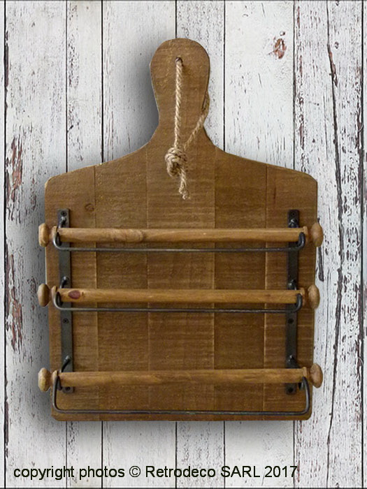 On aime ce distributeur mural original pour essuie-tout, aluminium et film en forme de planche à découper avec sa grosse cordelette de chez Antic Line. Il s’intégrera parfaitement dans une ambiance campagne. Distributeur de sopalin Antic Line. Dimensions : L36cm – P16cm – h50cm.