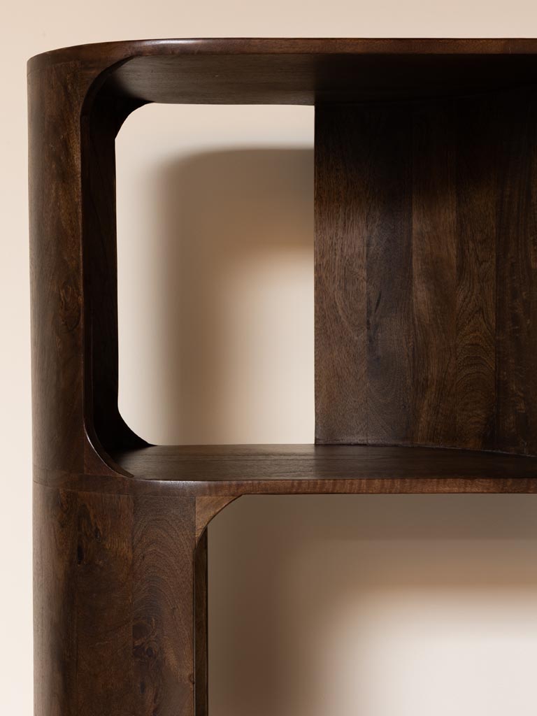 Enfin, la étagère bords arrondis Marini ne se limite pas à un simple meuble de rangement : elle incarne une philosophie du détail et du confort esthétique. Confectionnée en manguier durable, elle raconte la beauté des matières naturelles et la rigueur du travail artisanal. Sa couleur marron intense sublime les intérieurs clairs comme les ambiances plus sombres. Cette création signée Chehoma offre équilibre et personnalité à chaque espace. Avec son style déco vintage, elle réunit charme décoratif et praticité du quotidien. La étagère bords arrondis Marini devient alors le trait d’union entre nostalgie et modernité, entre élégance et simplicité. Véritable hommage aux meubles intemporels, elle apporte une note chaleureuse et authentique, transformant chaque lieu en un espace vivant et inspirant.