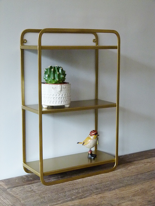 Coup de coeur pour cette petite étagère patine laiton à suspendre pour y recevoir bibelots, etc… On aime ses bords arrondis qui la rendent très tendance tout en étant intemporelle. Petite étagère 3 tablettes Madam Stoltz. Dimensions : L35cm – P14cm – H56.5cm.