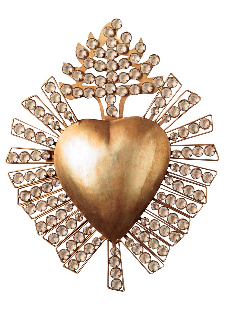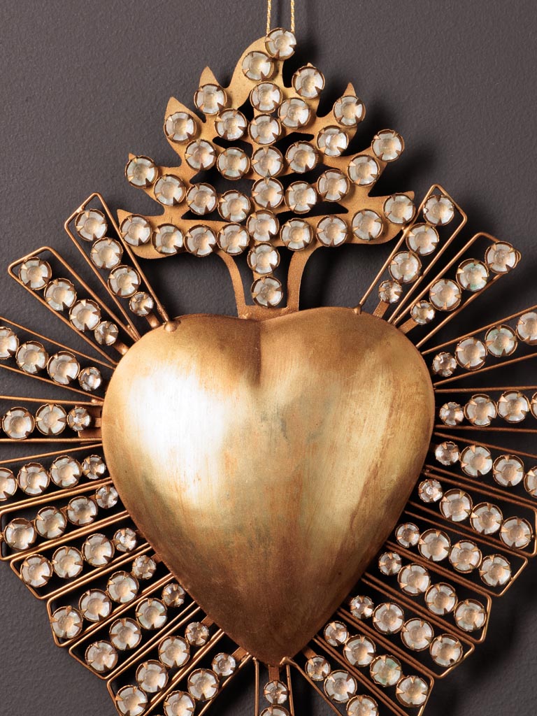 L’ex-voto bijou or et argent de Chehoma est une pièce singulière qui semble tout droit sortie d’un écrin ancien. Sa forme inspirée des ex-voto traditionnels mêle symbolisme protecteur et allure précieuse, comme un talisman que l’on aurait décidé d’exposer. Le cœur ou médaillon central se pare de détails fins, travaillés dans un alliage de Métal habillé de reflets Doré qui accrochent immédiatement la lumière. Des incrustations ou cabochons en Verre viennent parfois ponctuer la surface, renforçant le scintillement et la dimension bijou de l’objet, idéal pour une atmosphère de déco cabinet de curiosités riche en histoires imaginaires.
