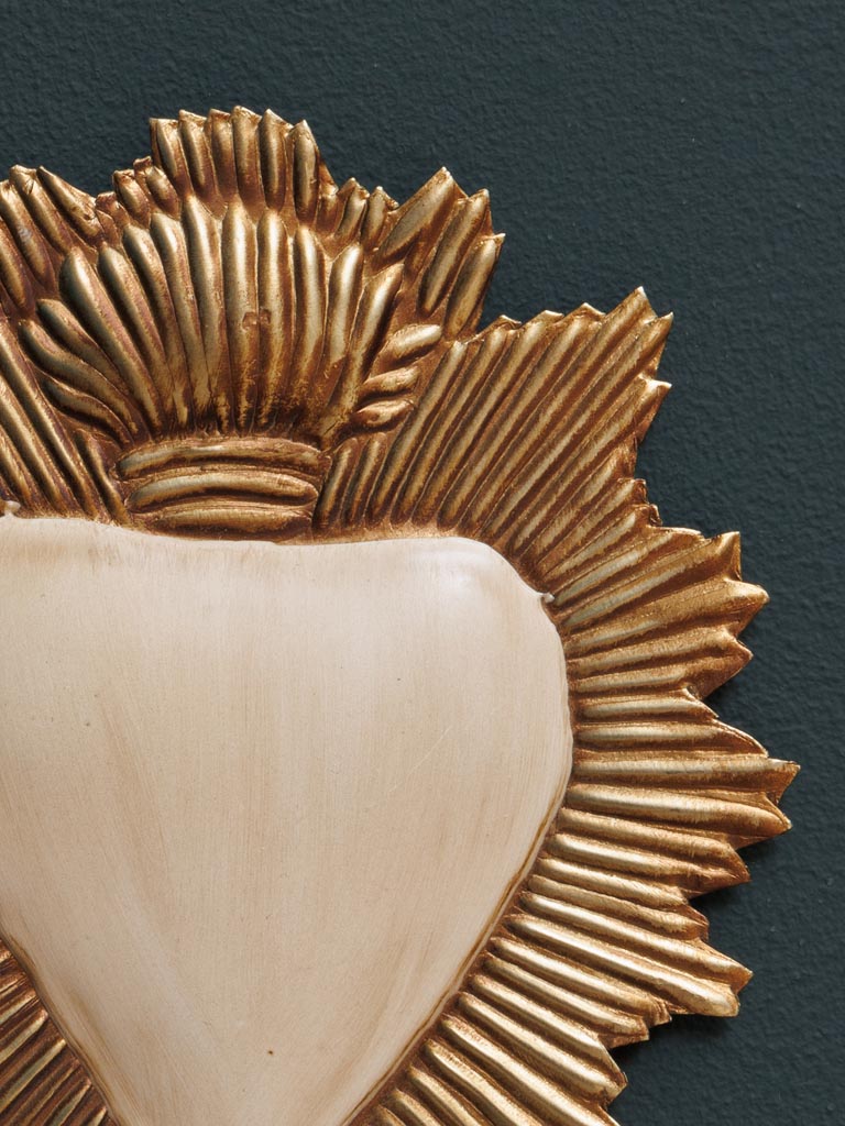 Par ailleurs, cette ex-voto coeur beige Maria trouve naturellement sa place au milieu d’objets hétéroclites, comme les globes anciens, les papillons naturalisés ou les gravures religieuses. Le cœur central, subtilement patiné, capte la lumière et fait vibrer les nuances Doré du Métal, ce qui crée un halo chaleureux autour de la pièce. Accrochée sur un mur peint en couleur profonde, suspendue à une patère ou posée sur une étagère, elle dialogue aussi bien avec des cadres anciens qu’avec des bougies et des fioles mystérieuses. Grâce à son coloris beige, ni trop sombre ni trop éclatant, elle joue un rôle d’équilibre dans la composition globale d’une déco cabinet de curiosités, liant entre eux les éléments sombres et clairs.