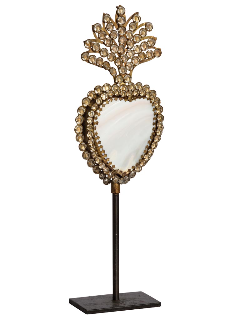 Enfin, le Ex-voto coeur nacré boîte sur pied de Chehoma est un objet décoratif à la fois symbolique et raffiné. Il apporte une note émotionnelle et artistique à l’espace. Son inspiration cabinet de curiosités crée une ambiance singulière et pleine de sens. De ce fait, il convient à des intérieurs éclectiques comme contemporains. Il peut devenir un élément central, attirant le regard et suscitant la curiosité. Grâce à ses matériaux en métal et nacre et à sa finition dorée, il s’intègre facilement dans diverses compositions décoratives. De plus, il constitue une idée cadeau originale et élégante. Son aspect travaillé reflète un réel savoir-faire et une attention minutieuse aux détails. Ainsi, il enrichit l’espace sans surcharge visuelle. En conclusion, cet ex-voto associe poésie, caractère et intemporalité avec équilibre et élégance.
