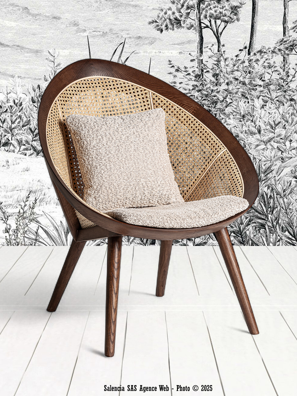 Le fauteuil Werth de Vical est une pièce maîtresse qui allie harmonieusement bois de frêne, rotin et polyester, proposant un style bohème relaxant et unique. Dès l’entrée dans une pièce, ce fauteuil capte l’attention par son design soigné et ses tons marron apaisants. Grâce à sa housse amovible, il offre une flexibilité d’entretien tout en préservant son allure élégante. En outre, ce fauteuil s’intègre parfaitement dans des espaces décontractés et empreints de caractère, apportant une touche de chaleur et de style. En somme, ce design signé Vical est une invitation à la détente et à l’évasion, tout en enrichissant l’atmosphère d’un intérieur.