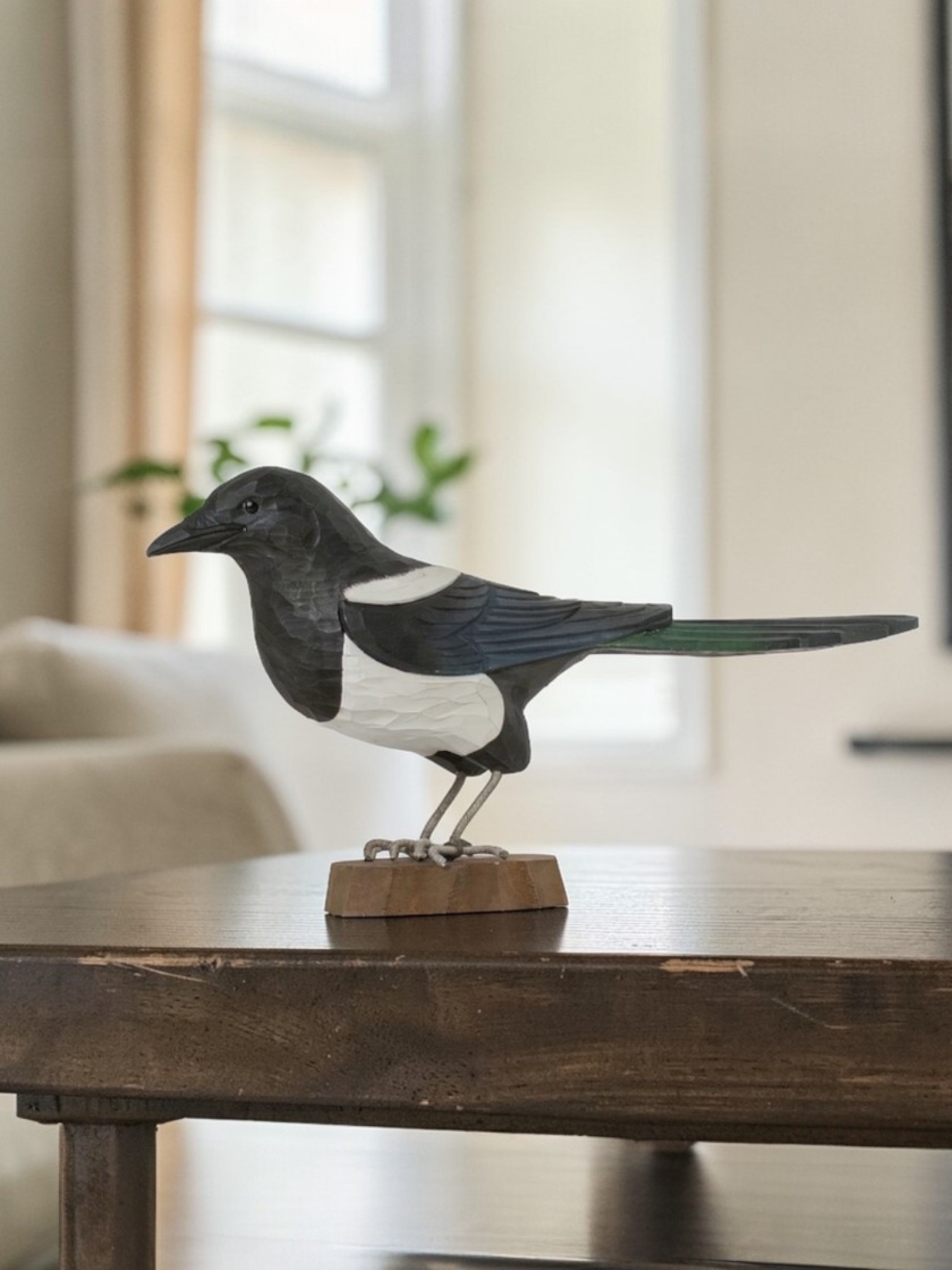 Figurine bois Pie bavarde