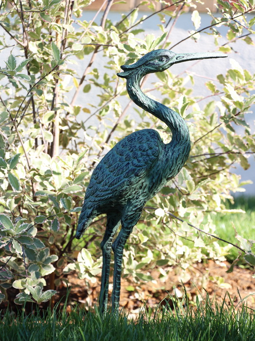 Héron en fonte patiné vert de gris déco campagne Chehoma