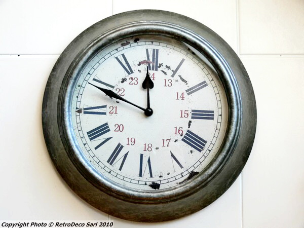 Déco d’ambiance rétro pour cette horloge en zinc avec son cadran patiné de chez Antic Line. Fonctionne avec une pile LR6. Dimensions : Diam (33cm) – Epaisseur (8cm).