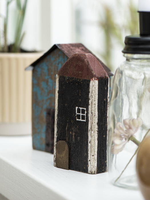 On craque pour cette petite maison en bois coloré noir et patiné à disposer sur une rebord de meuble, de fenêtre, etc… pour une déco d’ambiance bord de mer et campagne. Créer votre propre village en l’associant avec les autres modèles de maison de la même collection. Maison en bois Ib Laursen. Dimensions : L5.8cm – l2.5cm – H12cm.
