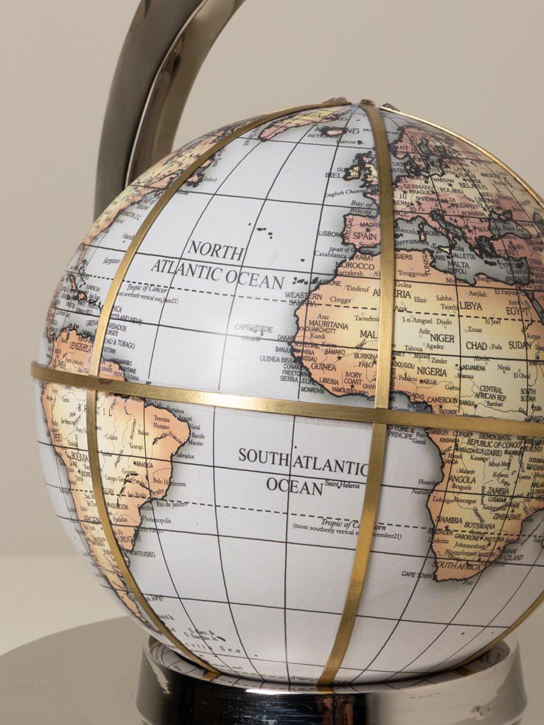 De plus, la mappemonde Décollage séduit par son esthétique expressive. L’Aluminium apporte une texture légère, tandis que le Laiton crée un contraste lumineux. Sa teinte gris permet de créer une ambiance sobre et élégante. Dans une déco vintage, elle s’associe aisément à des meubles patinés, des objets en cuir ou des accessoires rétro. Cette Mappemonde Chehoma devient un point focal qui structure la pièce avec caractère.