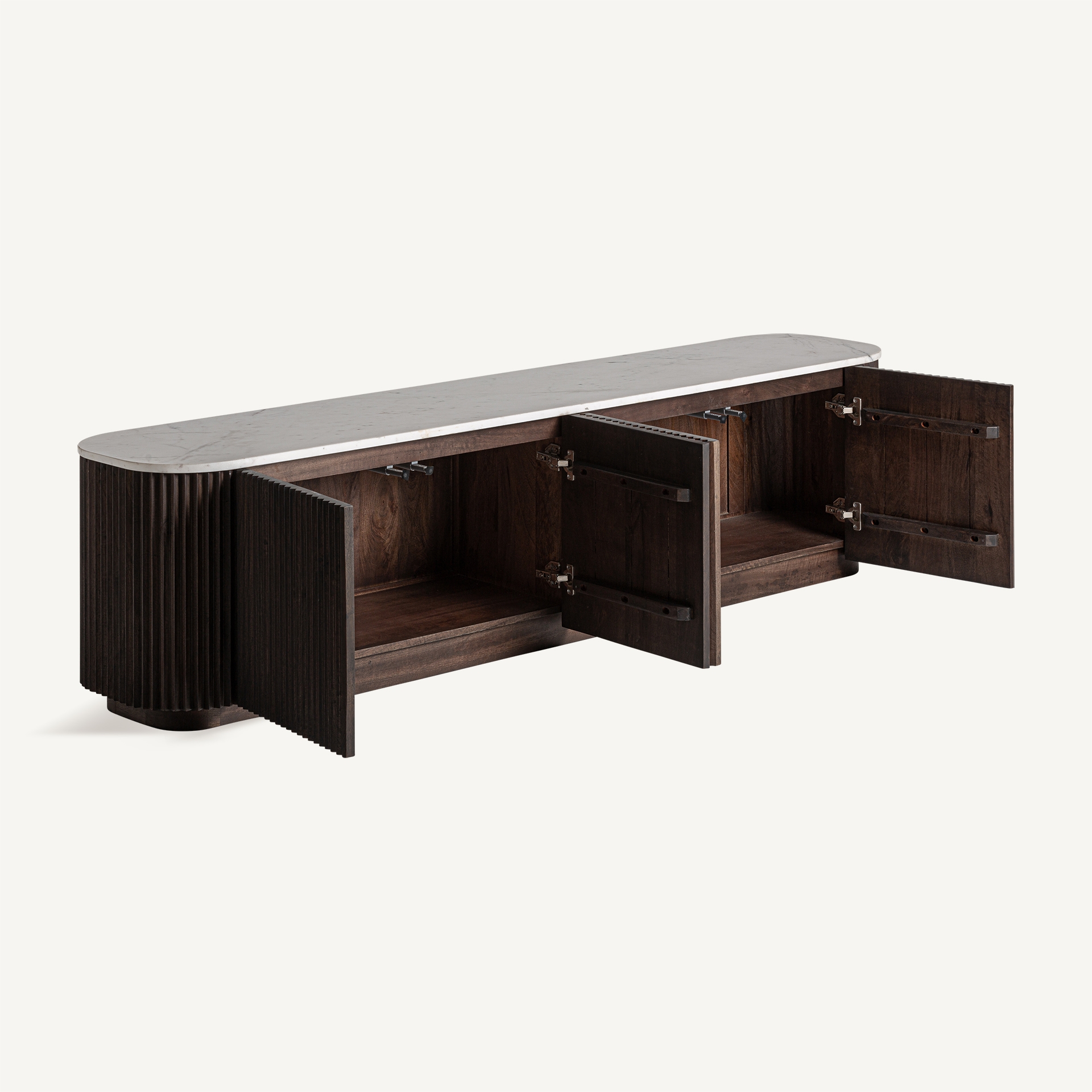 En outre, le meuble TV Cenves se distingue par sa capacité à sublimer votre espace de vie avec une majesté discrète. Il s’agit d’une pièce qui ne se contente pas d’être fonctionnelle mais qui enrichit également l’esthétique de votre salon. Par ailleurs, son plateau en marbre blanc offre non seulement une surface résistante mais aussi un contraste saisissant avec la texture du bois de manguier. Cela crée une ambiance harmonieuse et raffinée, idéale pour ceux qui apprécient une déco vintage et élégante. En conséquence, ce meuble devient un élément essentiel pour ceux qui souhaitent allier praticité et style dans leur espace de vie.