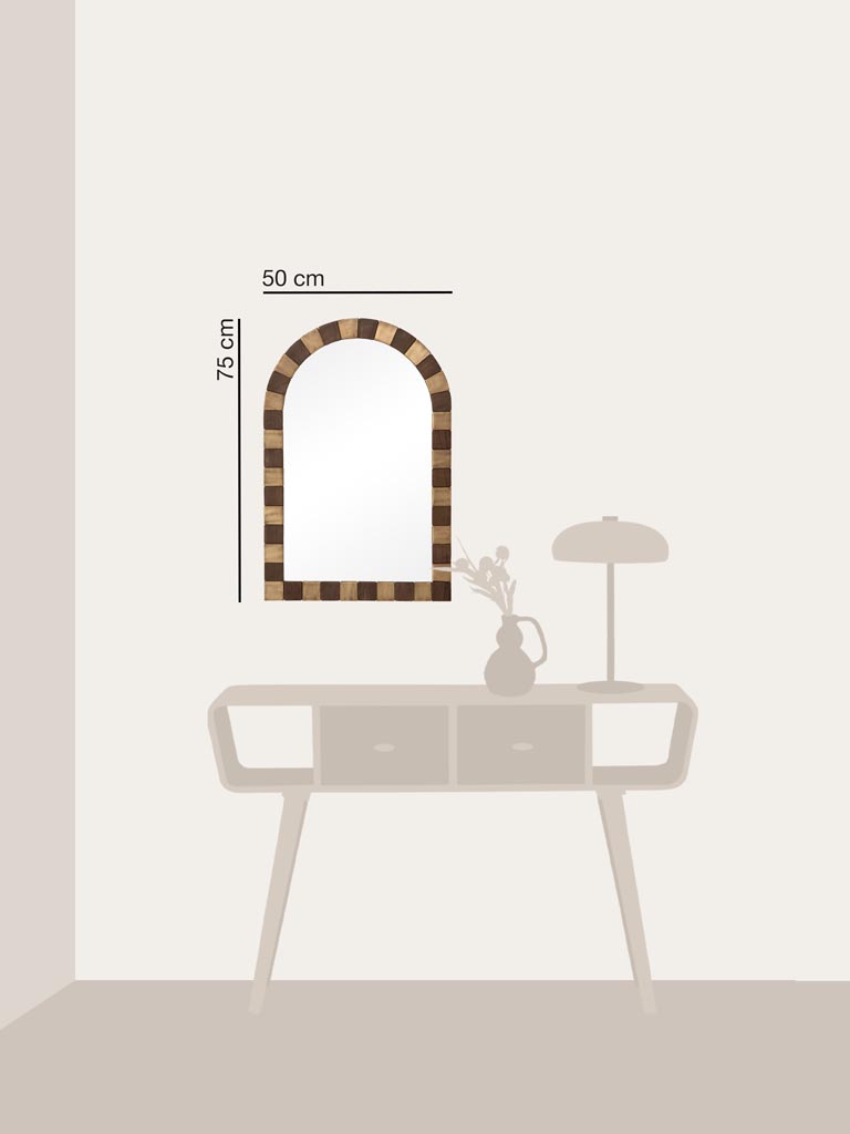 De plus, le miroir Arche Dorée séduit par son esthétique expressive. Le Manguier apporte une texture chaleureuse, tandis que le Laiton crée une touche lumineuse. Ses teintes marron et doré permettent de créer une ambiance chaleureuse. Dans une déco ethnique chic, il s’associe aisément à des objets sculptés, des fibres naturelles ou des pièces artisanales.