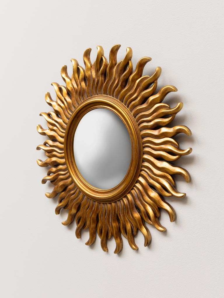 Le miroir convexe enflammé de la marque Chehoma est un objet fascinant qui attire immédiatement le regard grâce à son design unique et à son aspect mystérieux. En effet, ce miroir, inspiré des cabinets de curiosités, se distingue par sa forme bombée et sa finition travaillée. Dès l’entrée dans une pièce, il capte la lumière et la diffuse de manière originale, créant ainsi une atmosphère singulière et raffinée. De plus, il s’intègre parfaitement dans une déco cabinet de curiosités, apportant une touche d’élégance et de fantaisie à n’importe quel intérieur. Grâce à ses matériaux de qualité, tels que la résine et le verre, ce miroir allie robustesse et esthétique, tout en offrant une finition doré qui sublime l’ensemble.