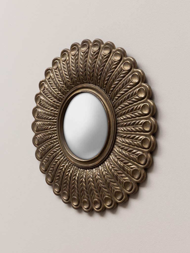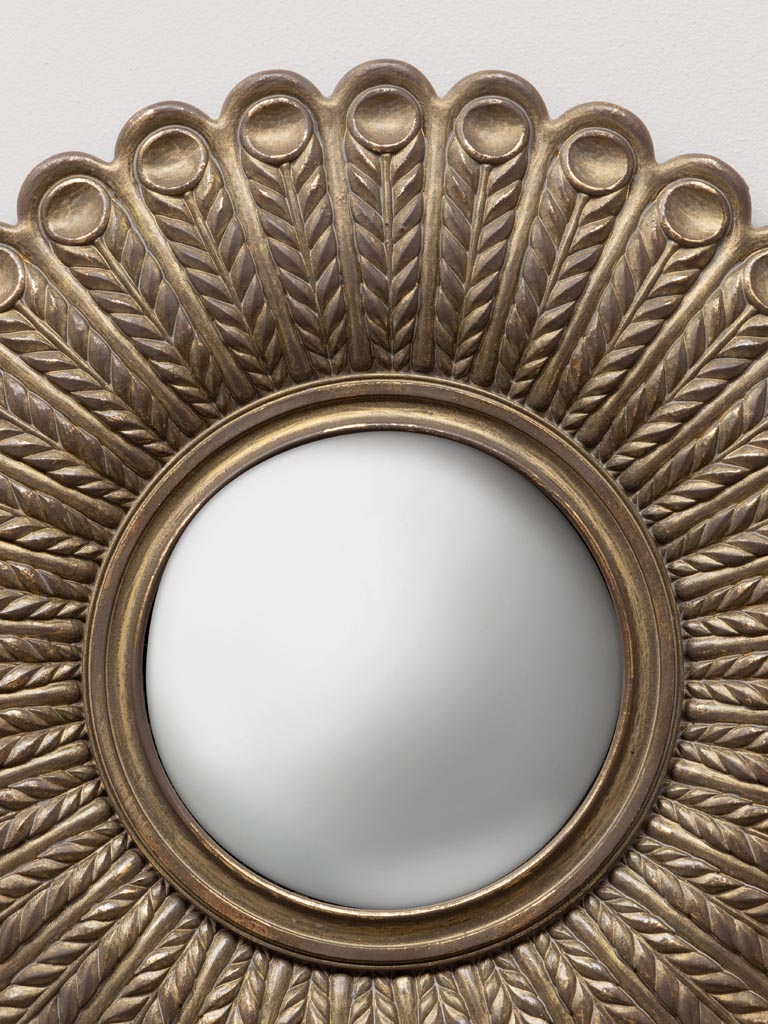 D’une beauté singulière et d’une élégance exotique, le miroir convexe plumes de paon dorées signé Chehoma captive par son design raffiné et luxueux. Inspiré par la majesté des plumes de paon, il présente une structure sculptée en résine, travaillée avec minutie pour reproduire chaque détail organique. La finition dorée apporte une lumière chaude et précieuse, enveloppant le verre convexe d’une aura distinctive. Ce Miroir Chehoma s’installe naturellement dans l’univers éclectique de la déco cabinet de curiosités, où curiosité et esthétique se rejoignent. Sa profondeur visuelle et ses reflets subtils créent un jeu de lumière harmonieux, donnant vie aux espaces et enrichissant leur personnalité. Seul ou intégré dans une composition murale, il devient un point focal qui attire et retient l’attention.
