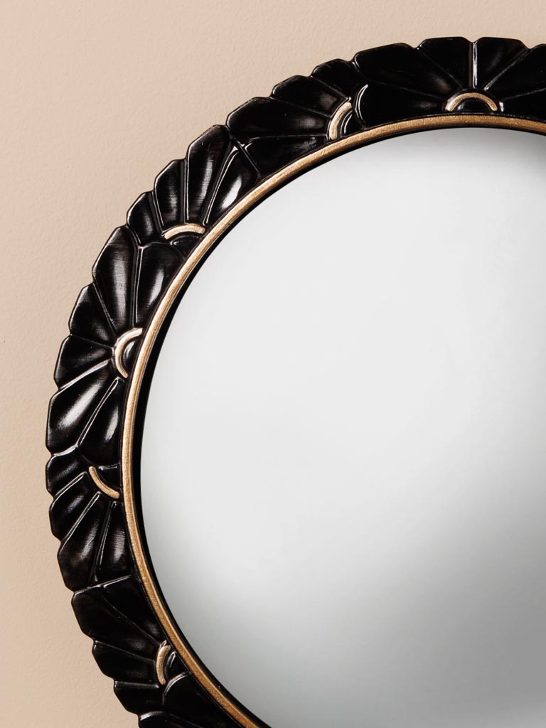 Par ailleurs, le miroir convexe touches dorées Mitad de Chehoma n’est pas seulement un accessoire décoratif, mais aussi un véritable atout pour agrandir visuellement une pièce. Son effet convexe permet de refléter la lumière sous différents angles, donnant ainsi une impression de profondeur et de volume. Ce miroir s’adapte aussi bien aux intérieurs classiques qu’aux ambiances plus contemporaines, grâce à son mélange harmonieux de résine et de verre. Les détails en noir et doré soulignent son caractère chic et intemporel, tandis que son style inspiré de la déco art déco séduit les amateurs de design. En outre, il peut être associé à d’autres éléments décoratifs pour créer un ensemble cohérent et personnalisé, tout en restant la pièce maîtresse de la décoration.