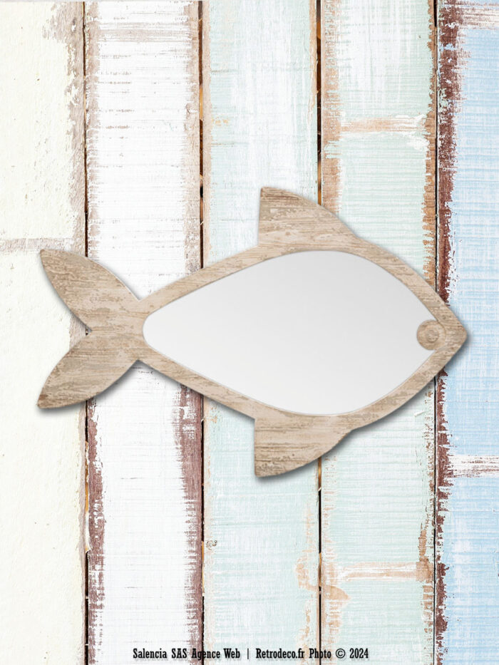 En plus de son allure esthétique, ce miroir est fonctionnel et pratique. Il offre une surface réfléchissante de haute qualité, idéale pour ajouter de la lumière et de la profondeur à votre pièce. Sa patine blanche se fond facilement dans différents environnements, que ce soit une salle de bain, un salon ou une chambre. Ainsi, le miroir poisson bois patine blanche n’est pas seulement un accessoire décoratif mais aussi un élément pratique qui améliore la luminosité et l’ambiance de votre espace. Ce miroir est, en somme, une pièce à la fois charmante et utile, qui ajoute du caractère à votre intérieur tout en restant fidèle à une esthétique maritime.