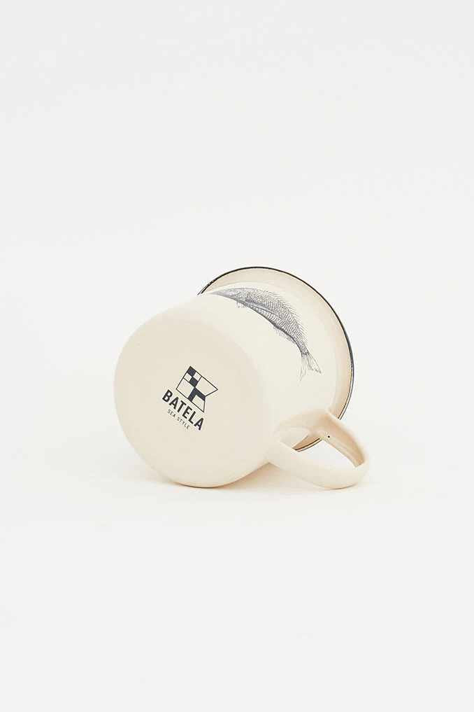 Mug Poissons Émail blanc et bleu